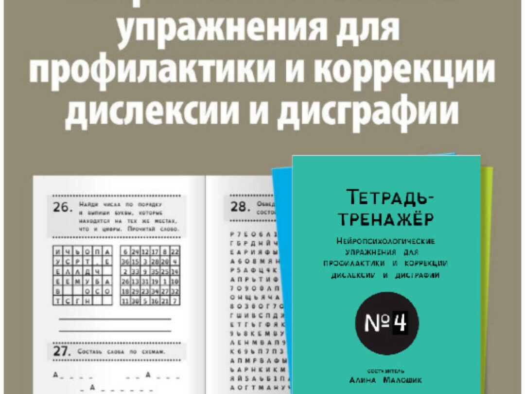 Алина Малошик «Тетрадь-тренажер №4, Нейропсихологические упражнения для детей с дислексией» — logoprofy