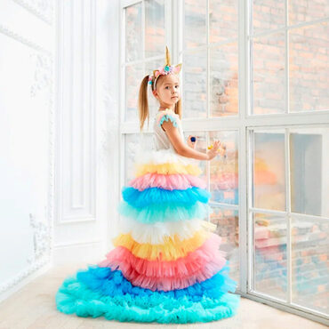 - Разберетесь с технологией сборки многоярусной юбки и шлейфа из фатина