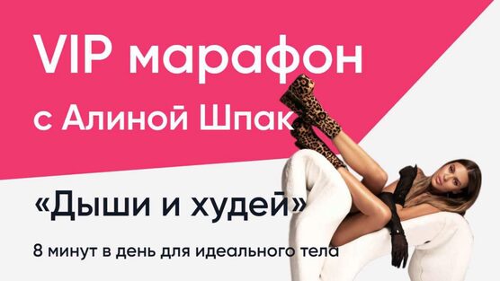 VIP марафон - это быстрая трехдневная программа, на которой мы освоим методику #шпакметод_vip, основанную на задержке дыхания (чтобы небольшое кислородное голодание позволило нашему организму быстро избавиться от всего лишнего) и современных упражнений в динамике.