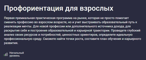 1, 3 апреля c 19:00, 2019 (МСК) Профориентация (профессиональная ориентация, выбор профессии, ориентация на профессию, профессиональное самоопределение) – это процесс выявления у человека склонностей к определённому роду профессиональной деятельности. Выбор пути развития или специальности обучения,