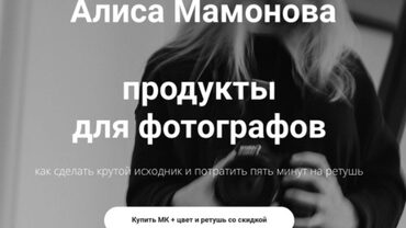 Алиса Мамонова «Продукты для фотографов. Мастер класс + цвет и ретушь»