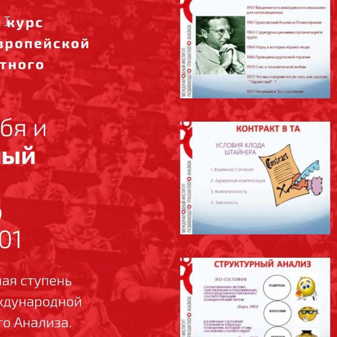 Этот курс — «официальный TA 101» — признан Международной ассоциацией транзактного анализа (ITAA) и Европейской ассоциацией транзактного анализа (EATA) в качестве стандартного введения при обучении и знакомству с Транзактным Анализом.