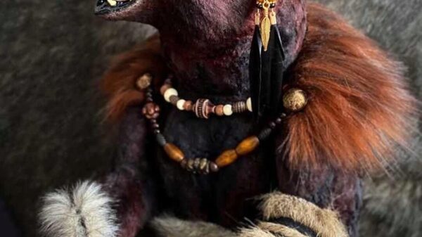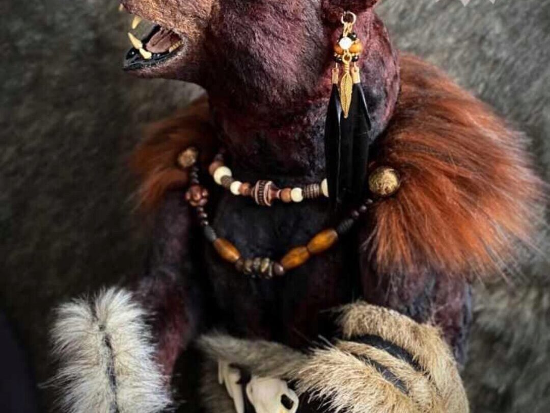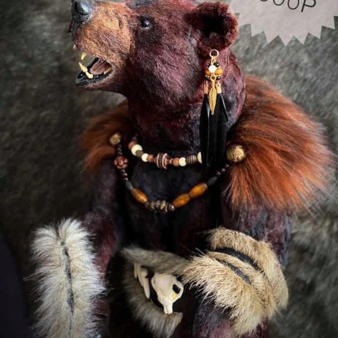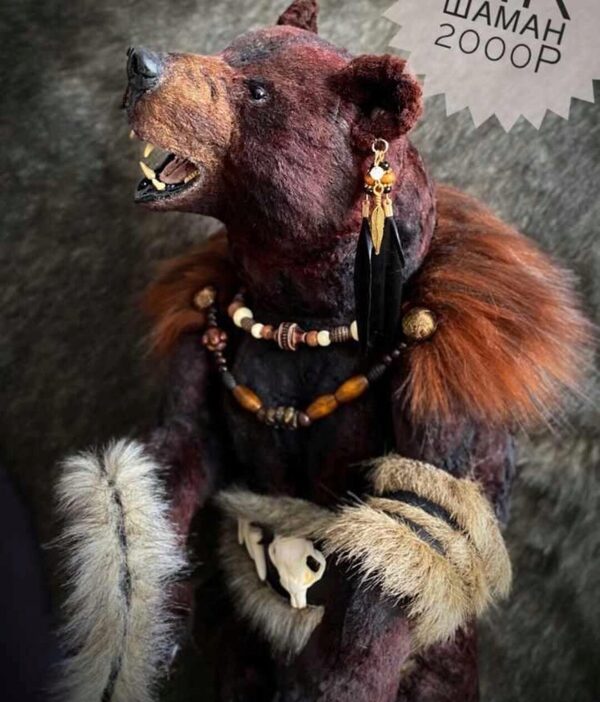 На курсе мы будем шить реалистичного медведя тедди в образе шамана. Рост мишки 43 см.