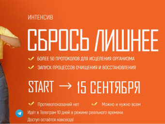 Вас ждет ускоренная программа похудения и исцеления от всех болезней (включая хронические), генеральная зачистка вашего организма и перезапуск работы всех его систем, легкие тренировки на все группы мышц (10 минут в день). В РЕЗУЛЬТАТЕ ИНТЕНСИВА ВЫ: • Восстановите здоровье • Избавитесь от множества