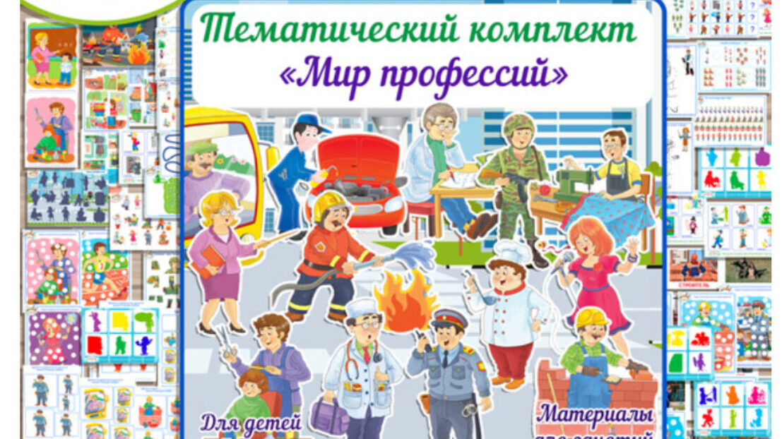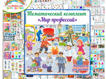 Комплект состоит из развивающих материалов и развивающих заданий для детей и знакомит с темой профессии людей.