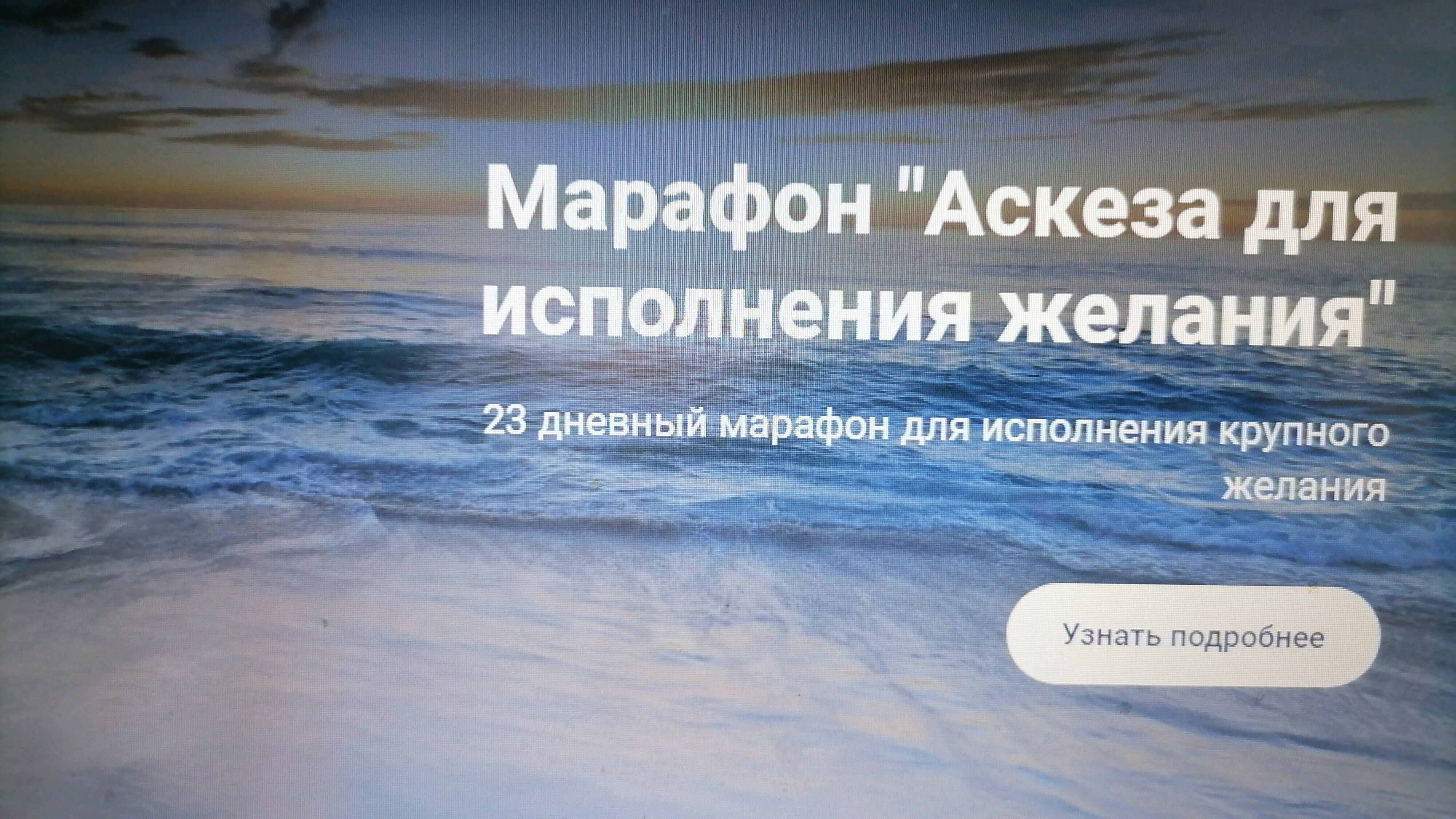 Старт -18 октября Длительность - 4 недели 11 заданий, которые изменят вашу жизнь на ДО и ПОСЛЕ Кому нужен марафон: Тем, кто не умеет получать удовольствие от жизни Кто живет ради всеобщего одобрения, не понимая как это «жить для себя» Кто застрял в жалости к себе страдает от того, что все в жизни
