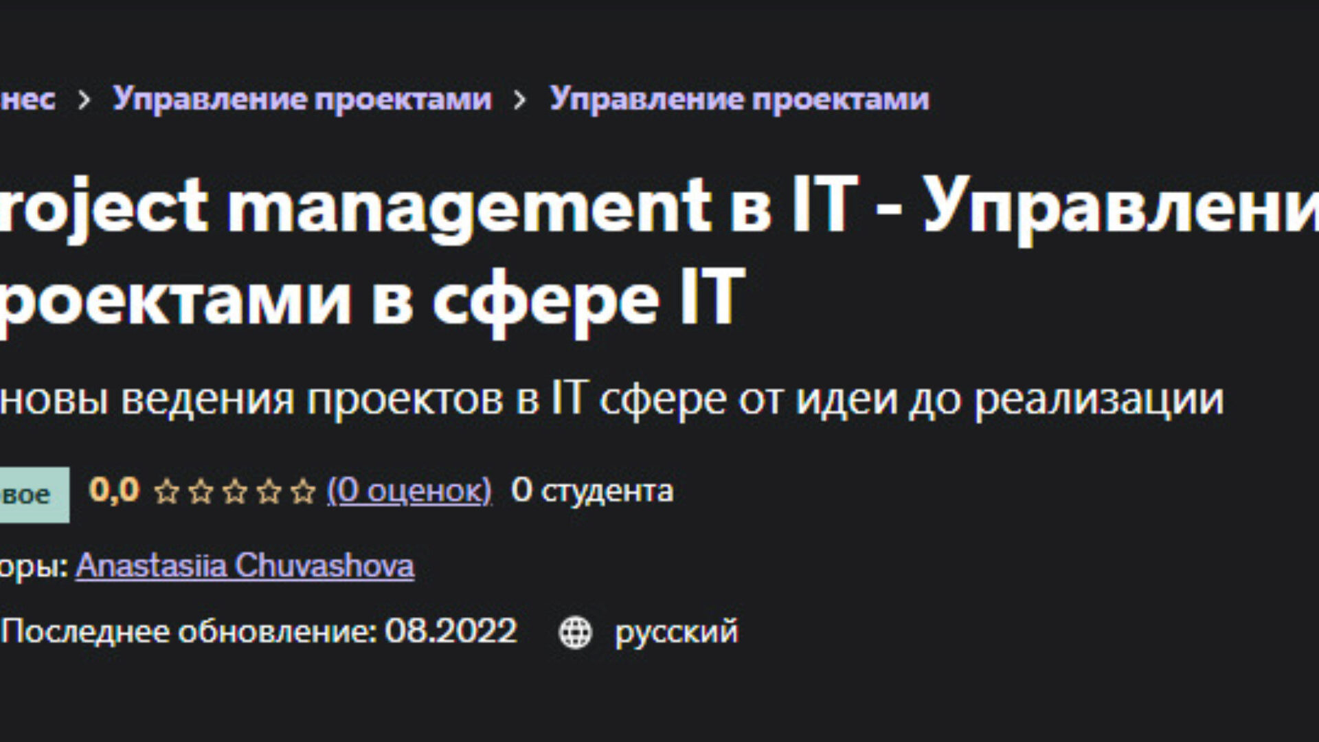 Анастасия Чувашова «Project management в IT - Управление проектами в сфере IT» — Udemy