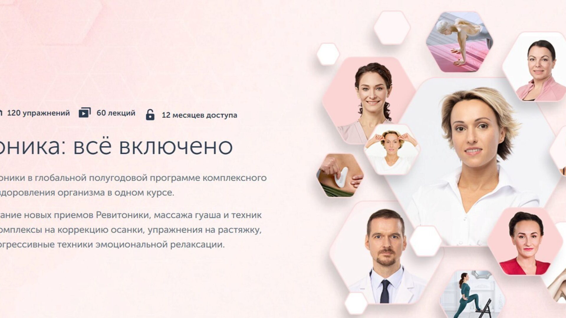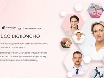Ревитоника: всё включено 2.0 Лучшее из Ревитоники в глобальной полугодовой программе комплексного омоложения и оздоровления организма в одном курсе. Идеальное сочетание новых приемов Ревитоники, массажа гуаша и техник тейпирования. Комплексы на коррекцию осанки, упражнения на растяжку, ЛФК. А также