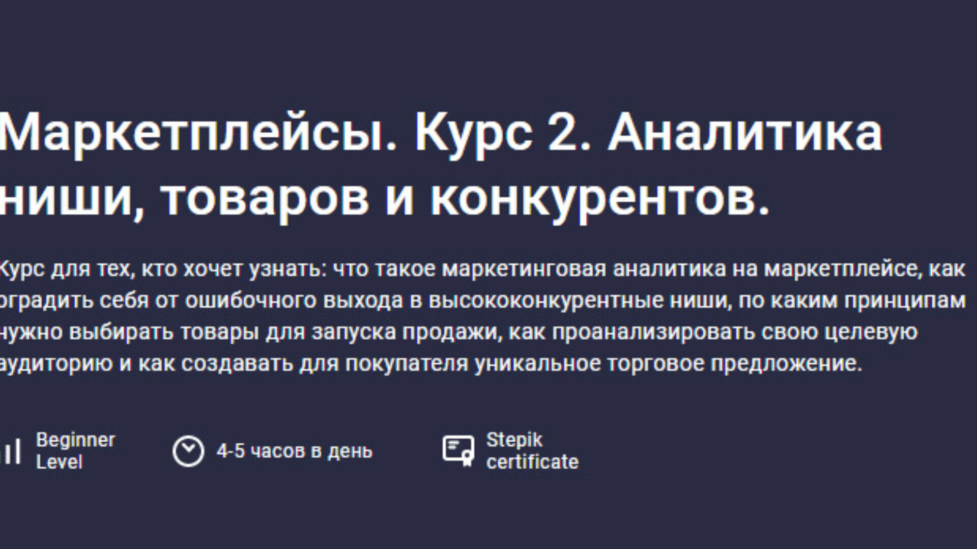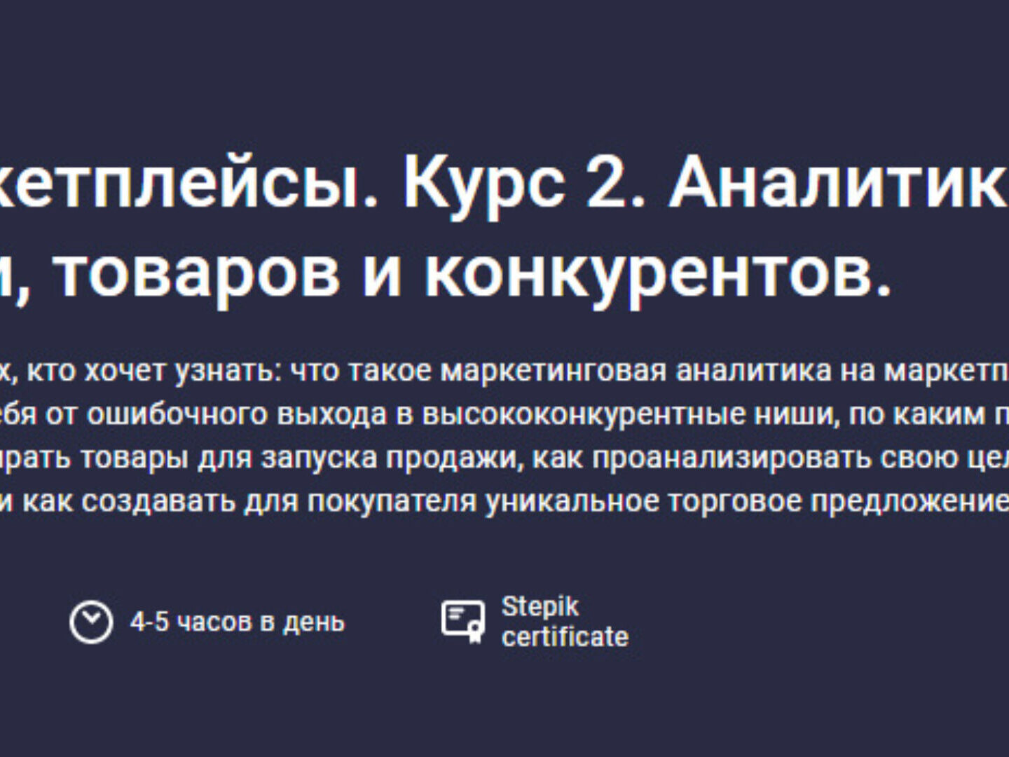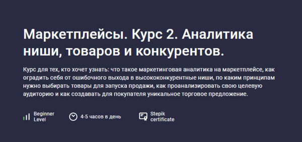 Анастасия Эджингтон «Маркетплейсы. Курс 2. Аналитика ниши, товаров и конкурентов» — stepik