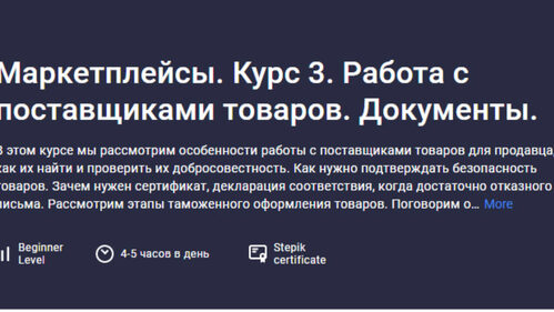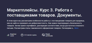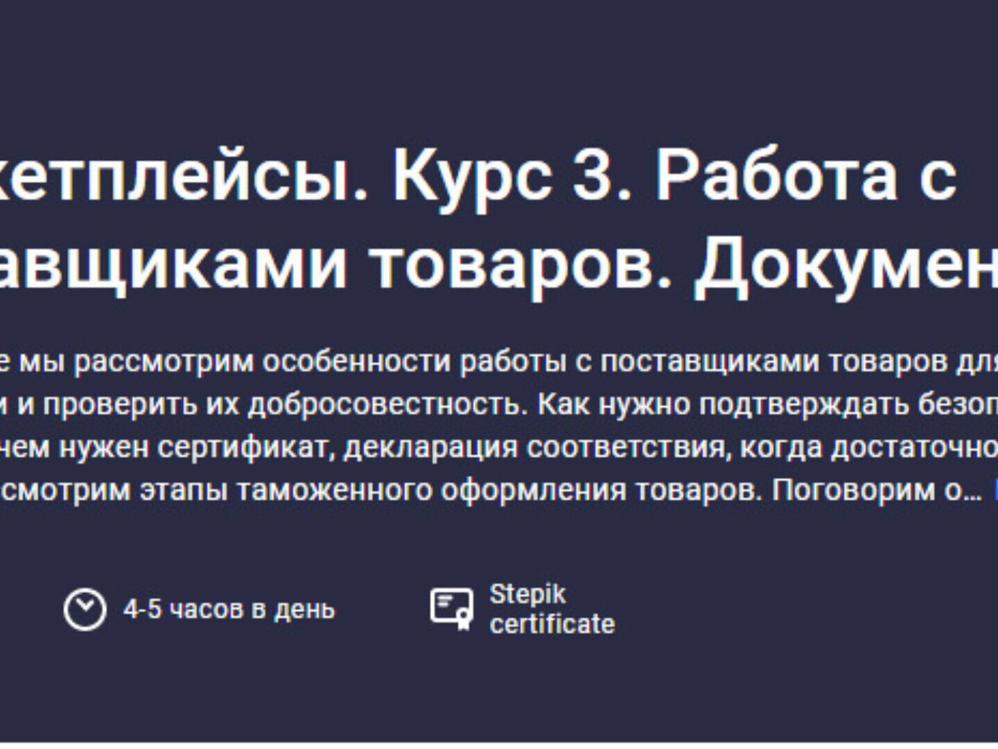 Анастасия Эджингтон «Маркетплейсы. Курс 3. Работа с поставщиками товаров. Документы» — stepik