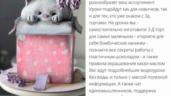 Курс подойдёт как для новичков, так и для тех, кто уже знаком с 3д тортами.