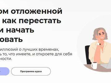 Поймете, как справляться с прокрастинацией, достигать поставленных целей и сохранять оптимизм даже в самые плохие дни. Курс подойдет, если: Вы чувствуете себя жертвой обстоятельств Начнете контролировать происходящее с вами и перестанете избегать неприятных ситуаций. Вы уверены, что у вас ничего не