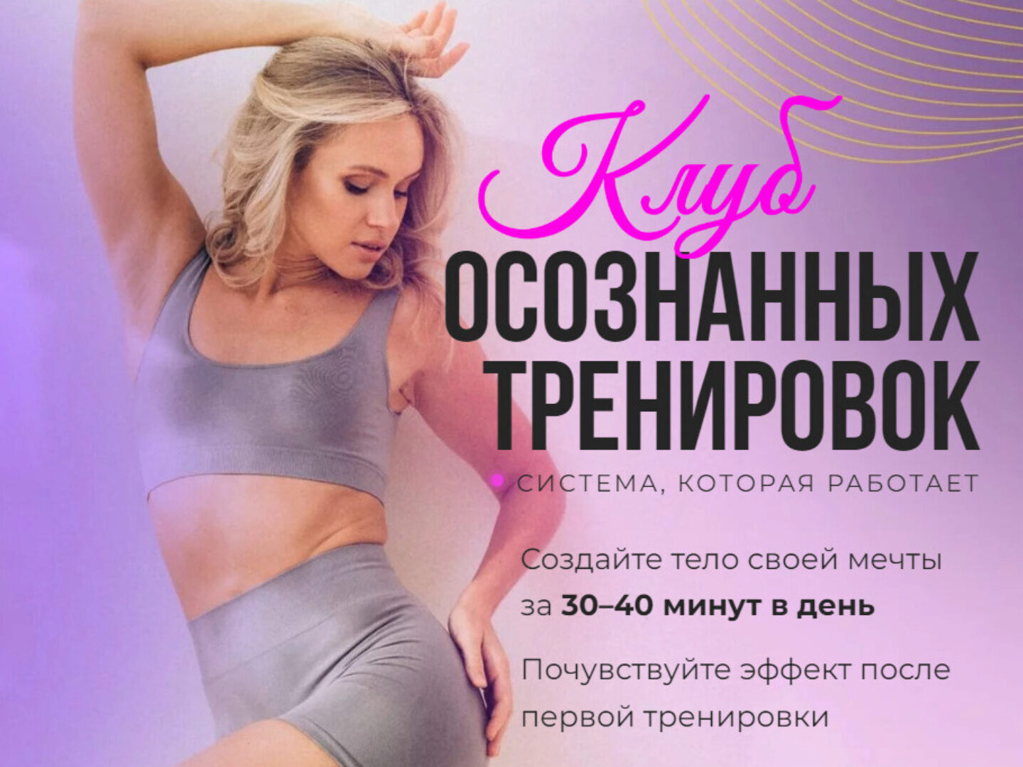 Клуб Осознанных Тренировок Система, которая дает результаты Создайте тело своей мечты. Тренировки любого уровня сложности, безопасные для суставах Стройное и здоровое тело за 40 минут в день. Клуб Осознанных Тренировок- это фитнес-клуб у вас дома, в котором никогда не скучно. 1000 человек ежедневно