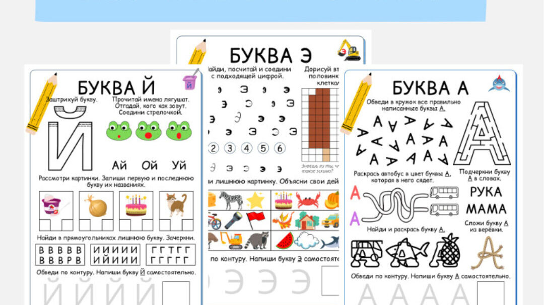 Изучение алфавита вместе с развитием памяти, внимания, воображения, мышления, восприятия, мелкой моторики, пространственных представлений и др.