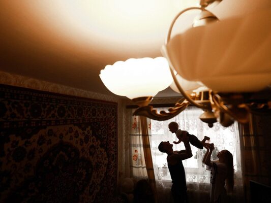 С настоящей семьей, в настоящей квартире. В самых обычных бытовых условиях. Никаких идеальных интерьеров. Квартира хрущёвка на первом этаже. Пасмурный снежный день. Три ковра в квартире. Ребёнок двух лет, с которым невозможно договориться.