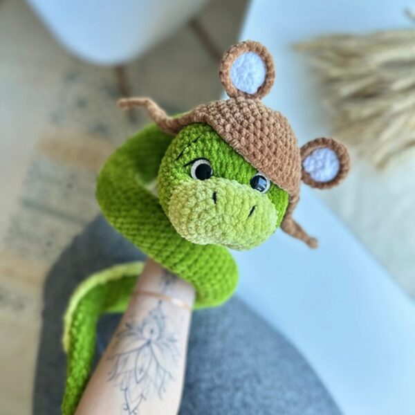МК «Гриша» содержит описание на змейку и три шапочки в виде лягушонка, зайчика и медвежонка.