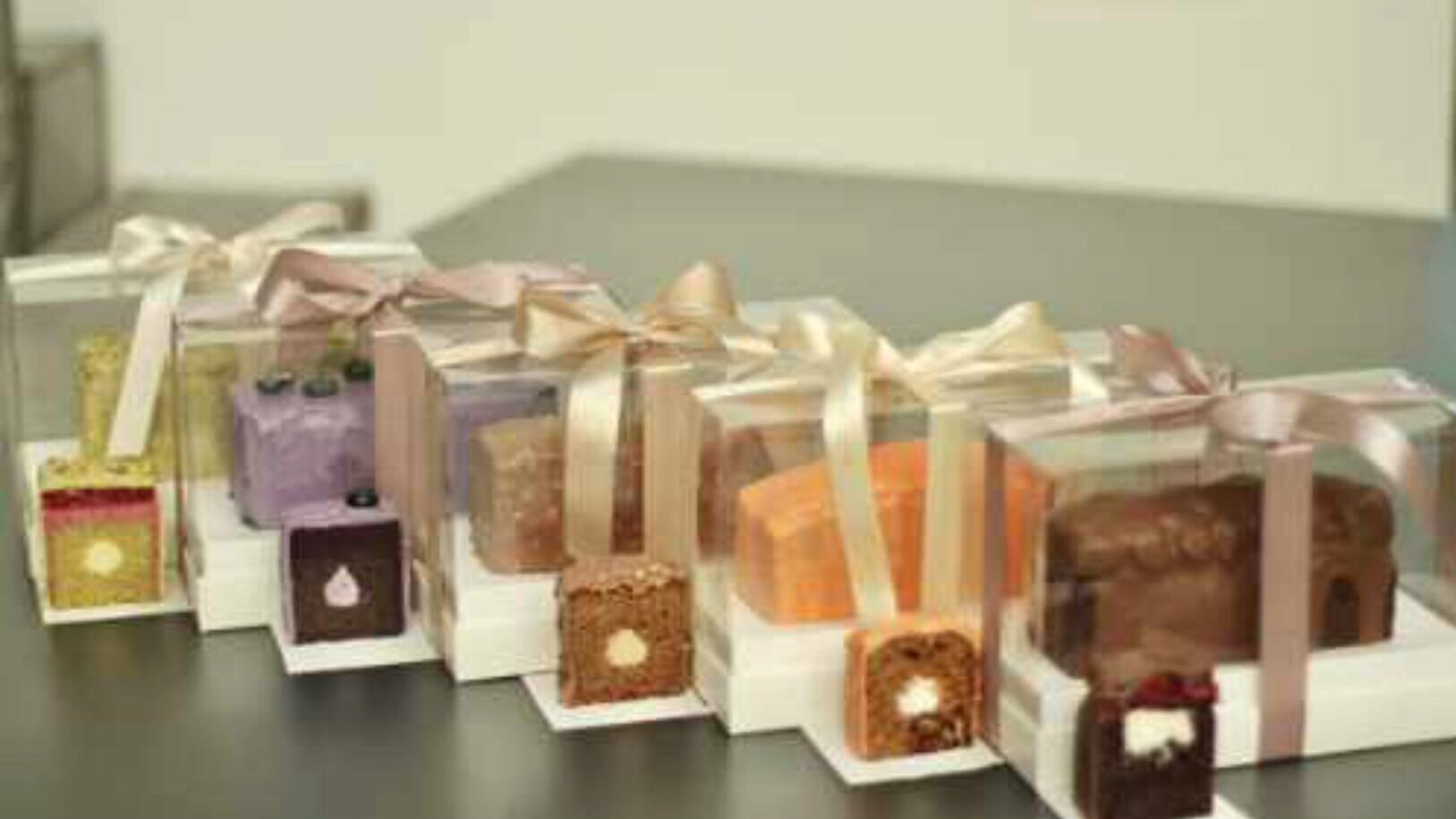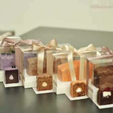 1. «Карамельный бум» 2. «Шмель» 3. «Глинтвейн» 4. «Вишневый бум» 5. « Ягодный взрыв» 6. « Манхэттен» 7. «Шокобан» 7 видов декора: 1. Простой контурный рисунок, глянцевая заливка сердец, простая надпись 2. Желейные ягоды, набор из торта и капкейков 3. Рисунок кондитерским мешком, окрашивание крема в
