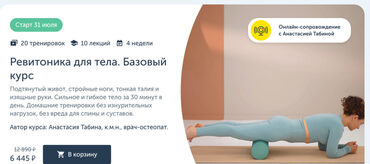 Первый комплексный курс естественного омоложения тела. Работаем со стопой, тазобедренными суставами, мышцами спины и живота, диафрагмой. Вы научитесь правильно ходить, сидеть, стоять, выполнять повседневные движения без боли и напряжения. Тренировки укрепят мышцы и сердечно-сосудистую систему. Курс создан кандидатом медицинских наук, врачом-кардиологом и остеопатом.
