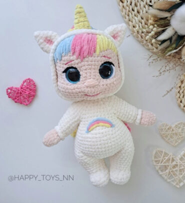 Мастер-класс «Малышка Единорожка» готов! . Связать можно практически из любой пряжи Если взять тонкий велюр или полухлопок, то получится малышка с ладошку Мастер-класс не сложный, поэтому подходит для начинающих мастериц. . МК в формате PDF состоит из: 12 страниц поэтапного создания игрушки; 22