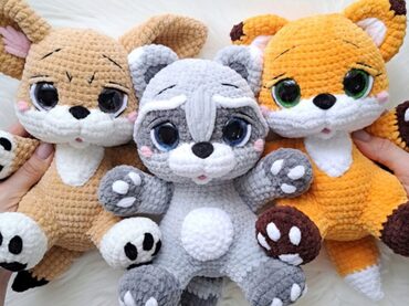 [Toys_knit_anny] Мастер-класс 3 в 1 Плюшевые лапки Мастер-класс включает в себя: описание вязания 3-х игрушек: зайки, мишки и котика; фото готовых деталей игрушек ; видео по оформлению игрушки: утяжка мордочки, глазок, пришивание ручек и ножек, оформление бровок и век, вышивание носика. Для работы