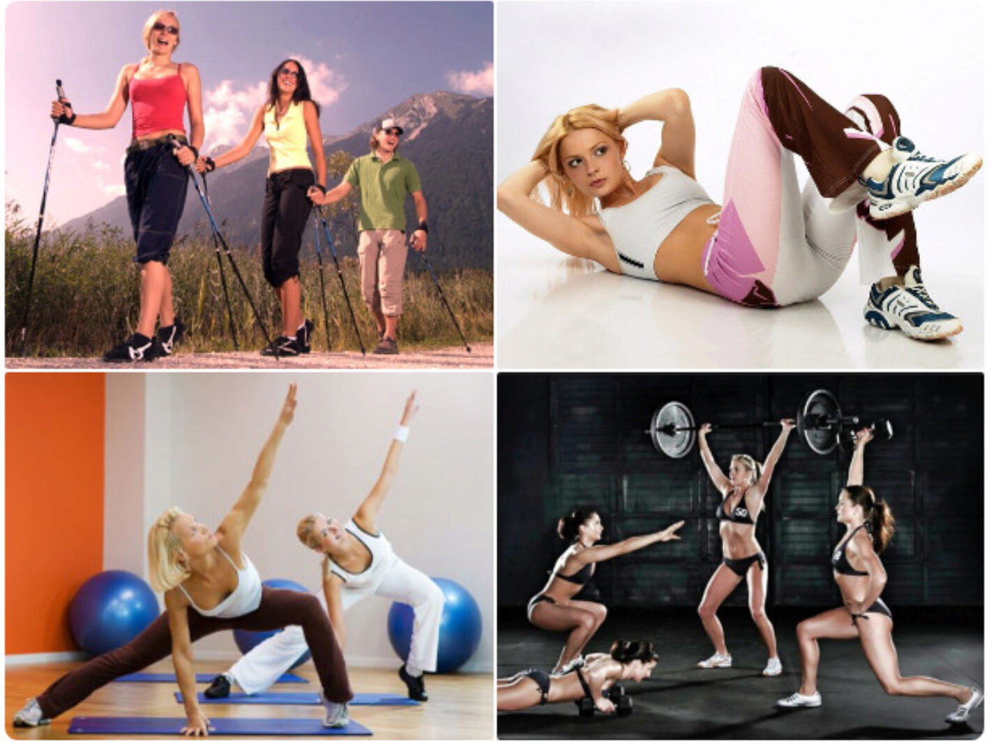 Мы подробно рассмотрим такие оздоровительные направления как циклическая аэробика (бег, плавание, вело и др.), танцевальная аэробика, калланетика, пилатес, йога, кроссфит, бодибилдинг, шейпинг, гравитационная гимнастика, ИЗОТОН.