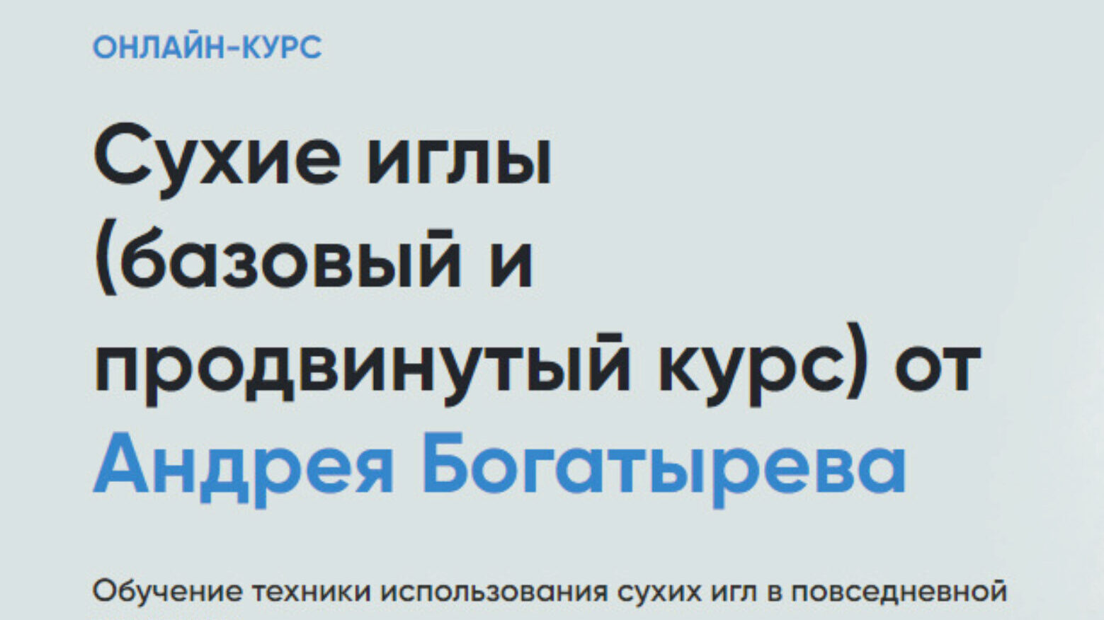 Андрей Богатырев «Сухие иглы базовый и продвинутый курс 2023»