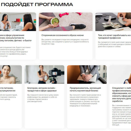 - Дополнительные модули по желанию: бьютификация, спортивная нутрициология, беременность