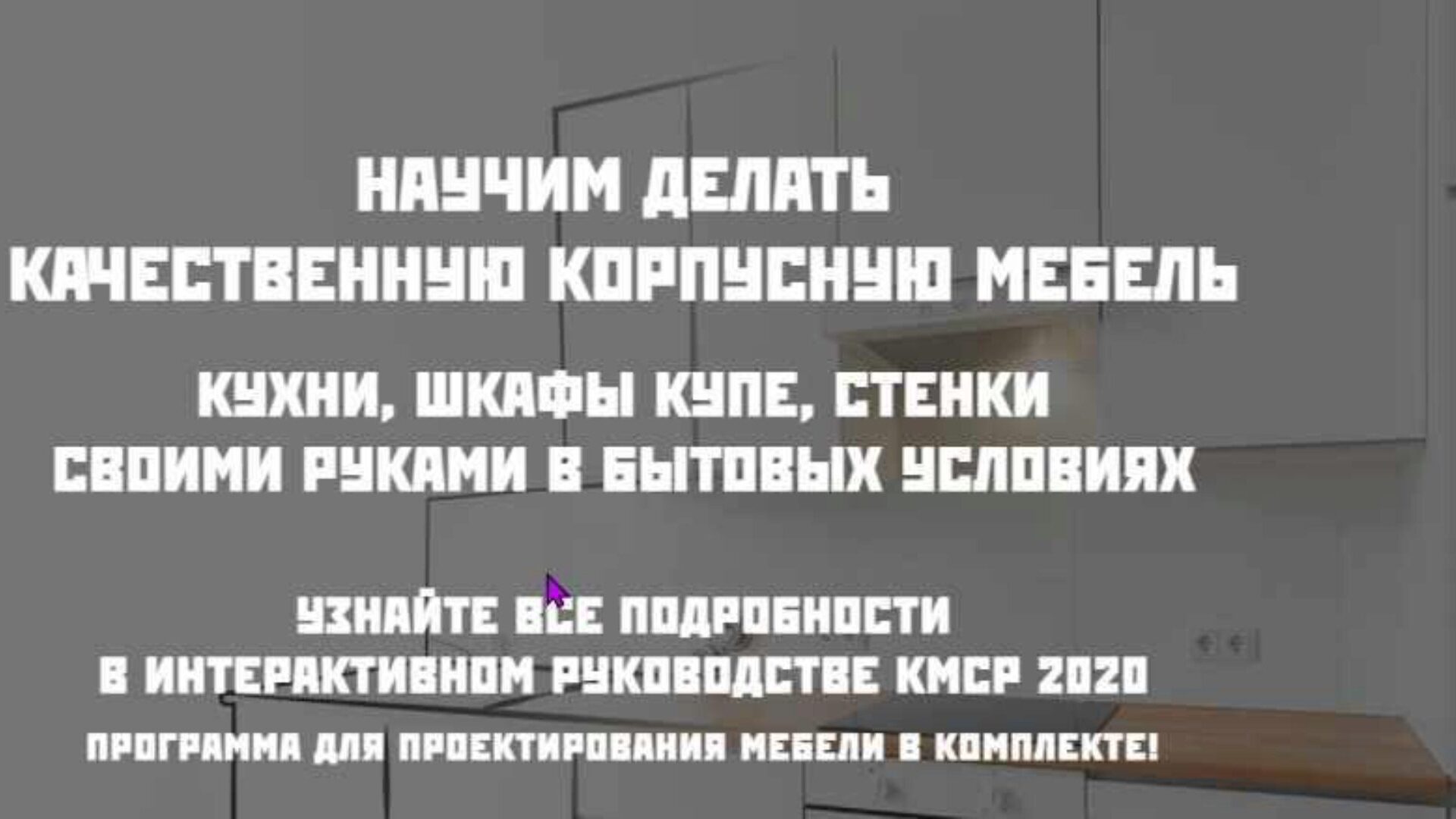 МИФ 1: «Мебель может изготовить только профессионал» Реальность: Взгляните на мастеров, изготавливающих мебель. Вы видели среди них хоть одного профессора или академика? Я вас уверяю, мебель изготавливают самые обыкновенные люди. Мы проводили множество конкурсов среди наших учеников и 30% из них вообще были женщины! Поэтому не думайте, что изготавливать мебель сложно. Вам это кажется сложным, пока вы не изучили этот вопрос. МИФ 2: «Для изготовления мебели нужны дорогостоящие станки и инструменты» Реальность: Еще с начала 2000 года начали появляться компании, которые не только продают материалы для изготовления мебели, но и оказывают услуги по распилу, кромкооблицовыванию торцов и даже сверлению отверстий по вашему проекту. Сегодня такие компании есть практически в каждом городе, их услугами пользуются почти все мебельщики. Поэтому качество ваших мебельных деталей будет неотличимо от качества деталей профессиональных мебельщиков. Ну а для сборки готовых деталей вам понадобится минимальный набор такого инструмента, как дрель, лобзик и небольшой комплект ручного инструмента. МИФ 3: «Мебельную фурнитуру не так просто купить» Реальность: Сегодня мебельная фурнитура доступна в розницу всем желающим. Практически в каждом городе можно найти специализированные магазины по продаже мебельной фурнитуры и выбор там поистине огромен. Если подобных магазинов у вас нет (что очень сомнительно), то можно ее заказать в интернет-магазинах с доставкой в любую точку России. МИФ 4: «Нужен талант дизайнера-конструктора» Реальность: Специальные мебельные программы позволят вам без академических знаний и талантов сконструировать практически любую мебель. Спойлер: ЧТО ДАСТ ВАМ КУРС КМСР Уверенность Спойлер: ЧТО ДАСТ ВАМ КУРС КМСР Если вы только начинаете свой путь в производстве мебели, КМСР 2020 даст вам все необходимые навыки, которые помогут вам стать мастером. Изучив курс, вы сможете избавиться от неуверенности и начнете получать удовольствие от процесса её изготовления. Вы будете знать не меньше, а скорее даже больше других мастеров. Свобода При желании у вас будет возможность организовать свой бизнес. Вам необязательно быть привязанным к своей работе. Имея навык изготовления мебели, вы сможете организовать свою мастерскую. Будучи хозяином самому себе, ты решаешь когда тебе устроить отпуск, ты решаешь как организовывать рабочий день, ты решаешь с каким клиентом работать, а кому отказать. Рост Ты можешь развиваться как частный мастер, например, изготавливая заказы не дешевле 300 000 рублей. Или можешь развиваться как организатор своей мебельной фирмы. Своё дело это, конечно же, ответственность, но в то же время это развитие и свобода. Имея готовые проекты и библиотеки элементов для данных программ, вы легко сложите тысячи вариантов новой мебели. Если же в голове нет своих идей, то вы можете скопировать мебель с любой фотографии. Продажник единый для всех выпусков