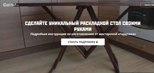 Раскладной стол разработан Игорем Гардтом из мастерской «Гардтика» в Московской области. Этот стол не имеет аналогов в мире — станьте первыми и соберите все «сливки».