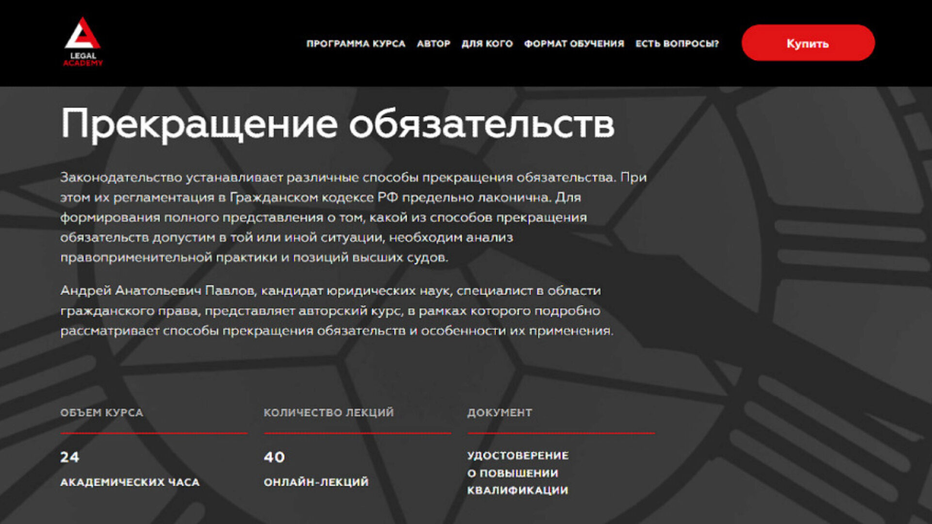 Андрей Павлов «Прекращение обязательств» — Legal Academy