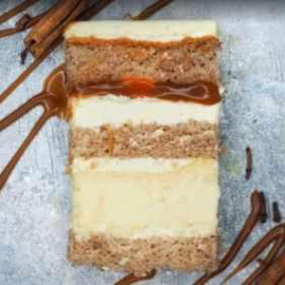 Торт с прекрасным сочетанием воздушных ванильных коржей (грецкие орехи в бисквите придают незабываемый вкус), кремчиза на белом шоколаде и домашней соленой карамели. С каждым кусочком нежность раскрывается по-разному - невозможно оторваться! Рецептурная карта торта «Карамельно-сливочный»: