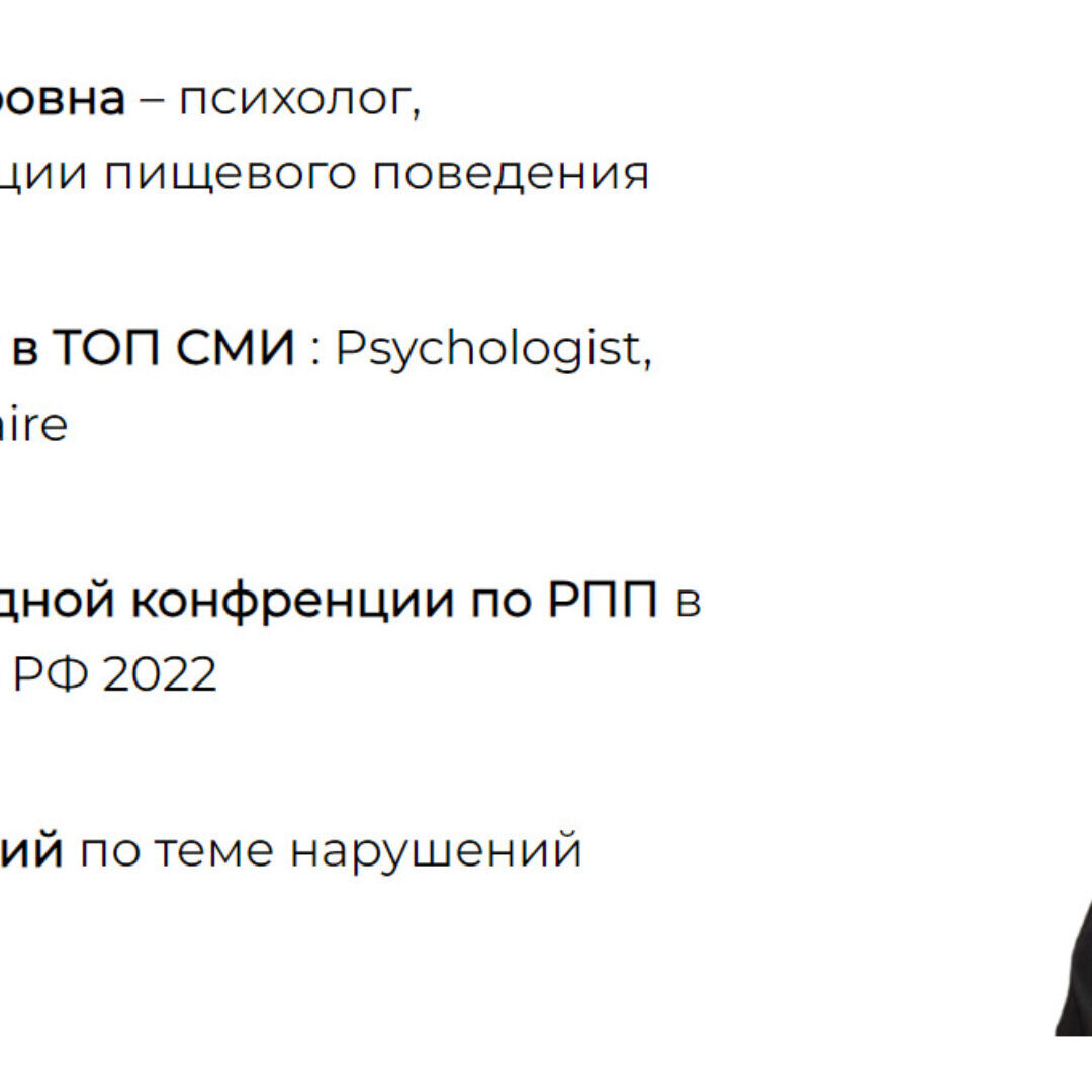 Эта программа для ваc, если вы хотите: Сбросить вес без вреда для здоровья + закрепить и сохранить достигнутые результаты Научиться контролировать аппетит и сбалансировать рацион питания Освоить профессиональные техники снижения веса и управления пищевым поведением Системно нормализовать работу