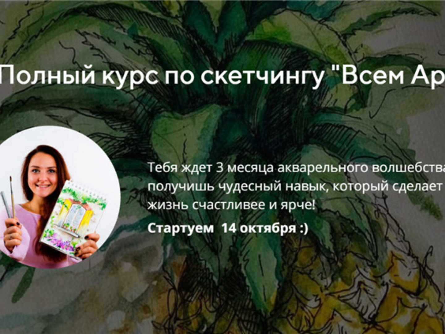 Онлайн курс по акварельному скетчингу «Рисовать легко» Гарантировано научитесь рисовать с нуля, получите массу положительных эмоций. Нарисуете 20 ярких скетчей, пройдя 6 модулей по 1-5 уроков по скетчингу, в течение 2 месяцев. Под чутким руководством и обратной связью от эксперта, в уютном кругу
