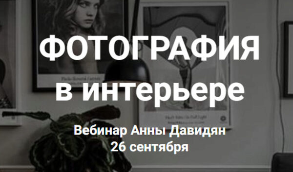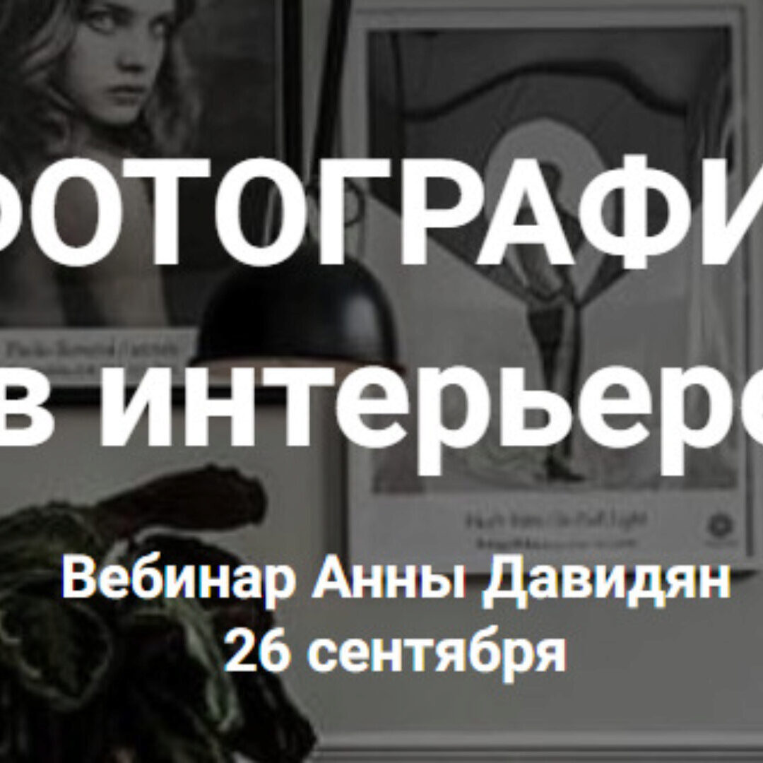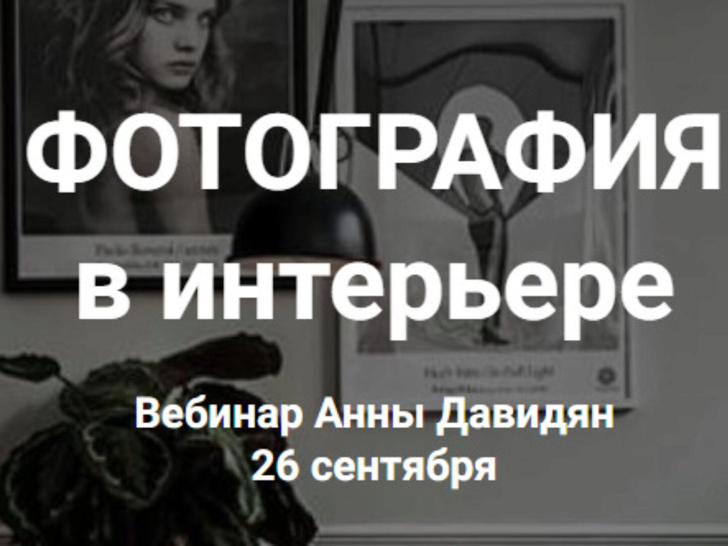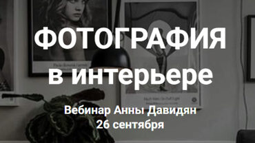 Всё узнаете на новом вебинаре «Фотография в интерьере» Анны Давидян - 26 сентября в 19.00 по Московскому времени.