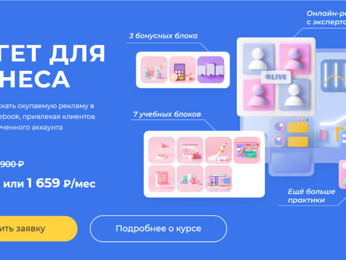 Познакомитесь с рекламным кабинетом, научитесь создавать бизнес страницу и сделаете все технические «преднастройки» для запуска.