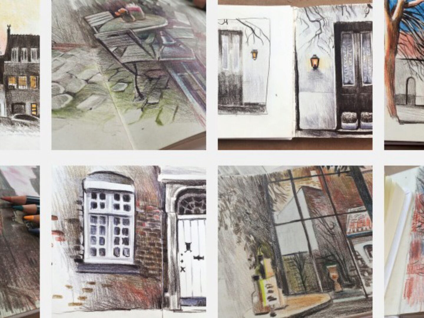 Будем рисовать теплый город, уютные кафешки, милые архитектурные элементы, колоритные местечки, контрастные (по цветам и настроению) скетчи... В общем создадим свою небольшую „историю“ этого города».
