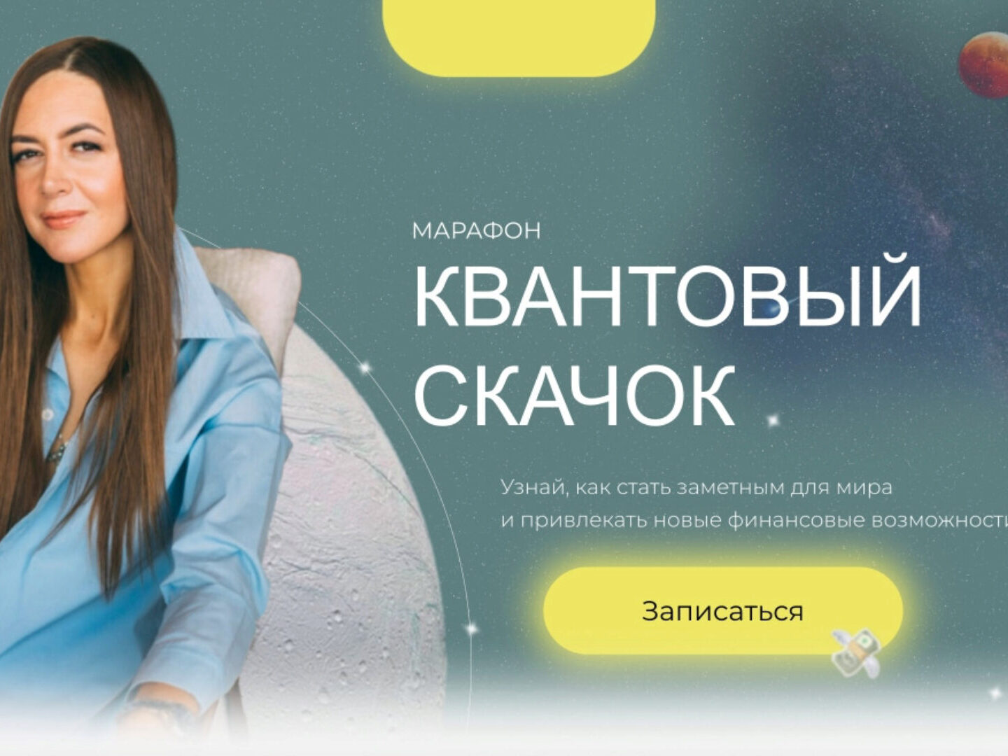 Дата: 25-31 декабря По традиции в предверии Нового года Марина проведёт свой легендарный трансформационный марафон «Квантовый скачок». Надоело ползти к своему светлому будущему? Что если настало время совершить космический рывок? Готовы?! Тогда до встречи на марафоне!