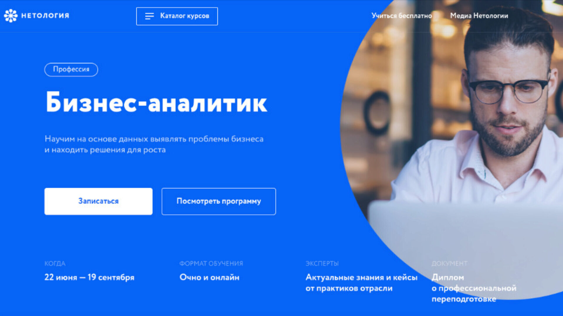 Освоите с нуля сразу две профессии ― системного и бизнес-аналитика. Получите всё для старта карьеры: универсальные навыки, практический опыт и сильное портфолио из 7 проектов. Освойте системную и бизнес-аналитику с нуля и получите востребованную профессию Бизнес-аналитик выявляет и оценивает