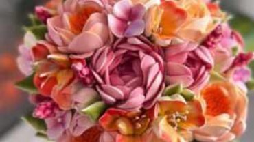 «Букет ассорти»: Обзор нужного для создания цветов инвентаря Обзор красителей Приготовление зефирной массы и рецепт зефира Отсадка пионов с серединкой из тычинок, бутоны Отсадка пионов, состоящих только из лепестков, бутоны Отсадка роз и бутоны Отсадка гортензий и отдельные цветочки Отсадка