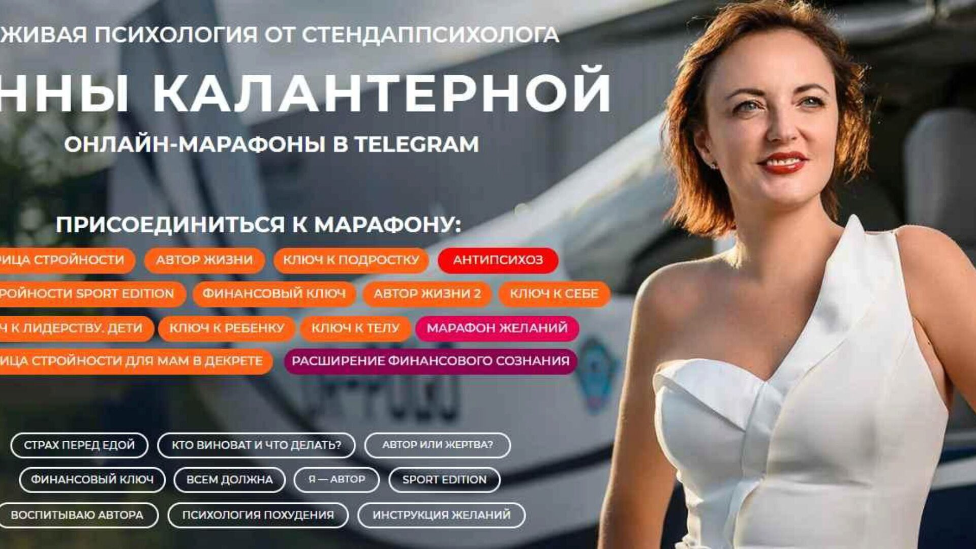 АВТОР И ТРЕНЕР АННА КАЛАНТЕРНАЯ «Я уже 25 лет практикующий психолог. Счастливая жена и мать двоих детей. 10 лет моя тренинговая студия помогает людям стать счастливыми. Я могу твердо сказать: «Я — автор своей жизни!» Этот марафон появился из моей психологической практики и личного опыта. Я хочу
