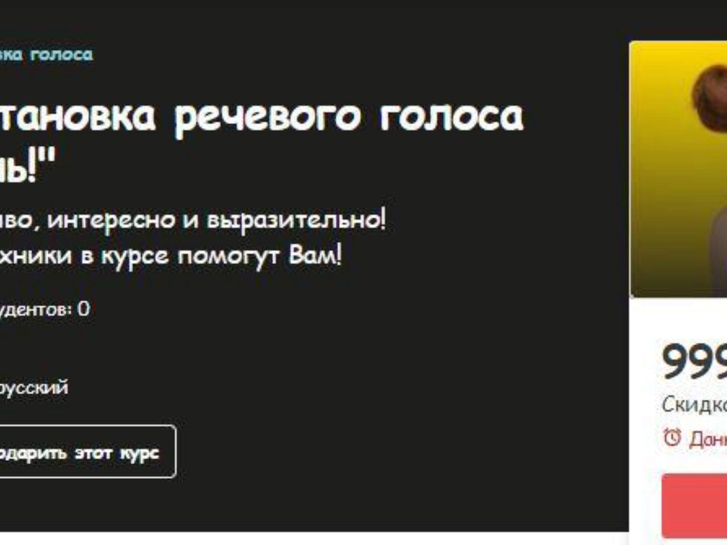 Предварительная запись, цена пока не известна! НА КУРСЕ ВЫ: расширите словарный запас и сделаете свой голос глубоким и сильным научитесь разговаривать с людьми уверенно и убедительно в жизни и на работе избавитесь от страха критики, провала и синдрома самозванца будете практиковаться в группах и