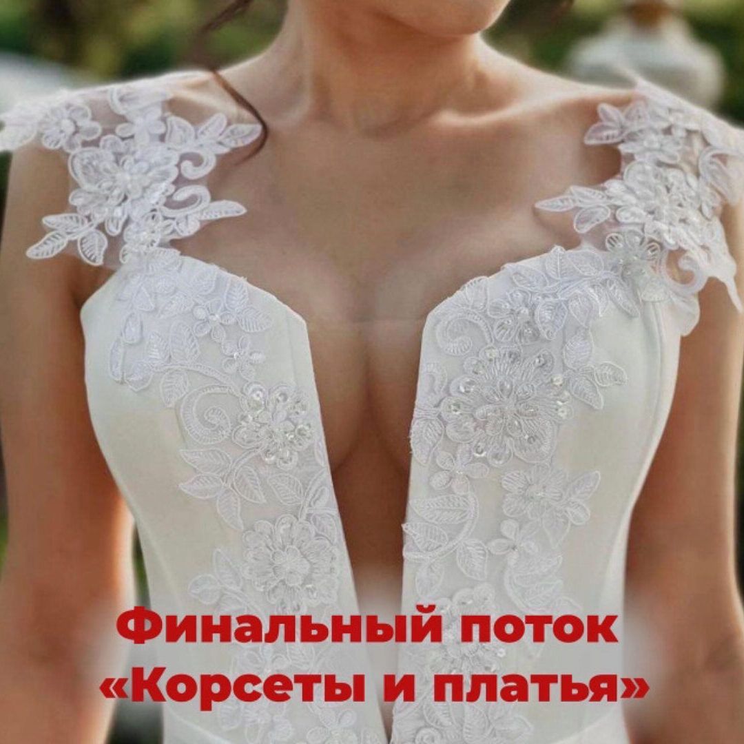 1 тариф — Пошаговые видеоуроки по технологии пошива платья на прозрачном корсете с отрезными чашками, V-образным вырезом и декором — Лекала на 40-50 размеры — Доступ к материалам курса на 30 дней