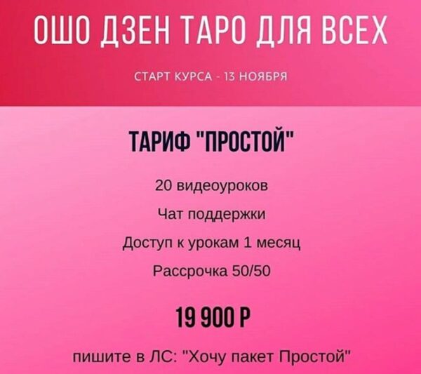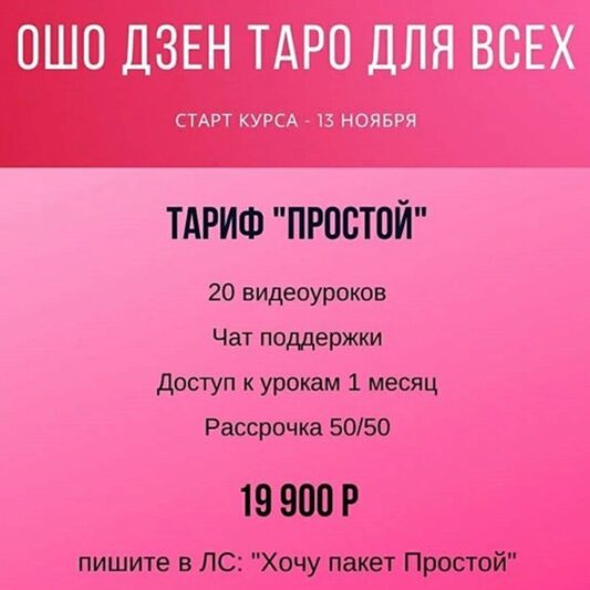 ОШО Дзен Таро - исцеление души Иван Макх Блок 3 Продолжительность курса 3 месяца. Вы научитесь: предсказывать будущее и видеть прошлое работать с сознанием и медитировать исцелять душу очищать родовые и реинкарнационные негативные программы призывать в судьбу любовь и счастье Для кого этот курс: