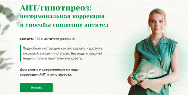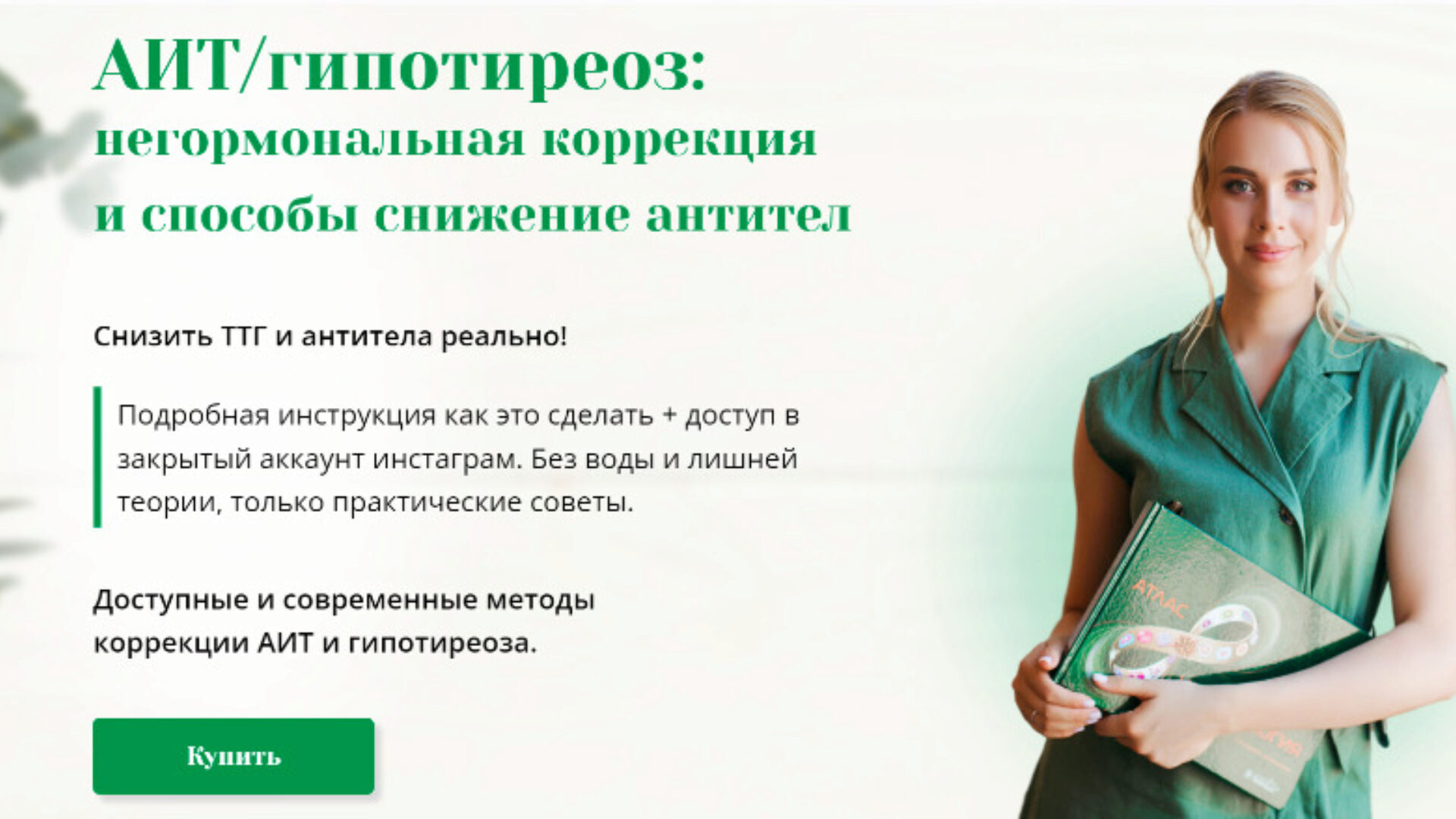 АИТ/гипотиреоз: негормональная коррекция и способы снижение антител. Снизить ТТГ и антитела реально! Подробная инструкция как это сделать. Без воды и лишней теории, только практические советы. Доступные и современные методы коррекции АИТ и гипотиреоза. Для кого: Интенсив будет актуален всем, у