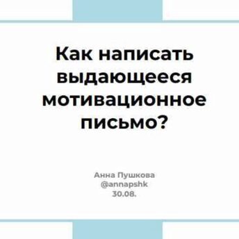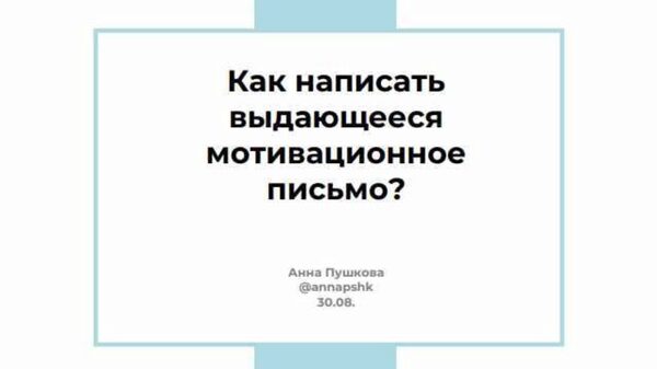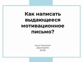 Анна Пушкова «Как написать выдающееся мотивационное письмо?»