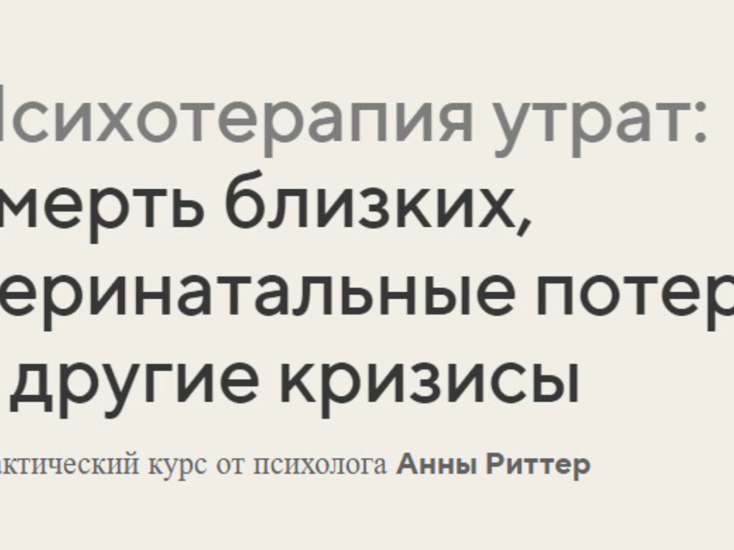 Курс «Психотерапия утрат: смерть близких, перинатальные потери и другие кризисы» от психолога Анны Риттер поможет начинающим и опытным психологам с уверенностью брать любые запросы без страха не справиться или разрушиться, повысить эффективность терапевтической работы.