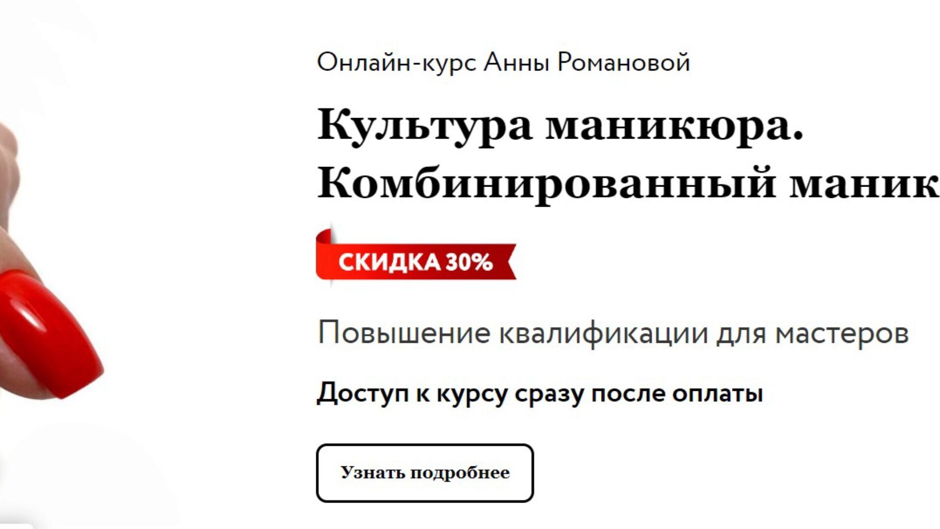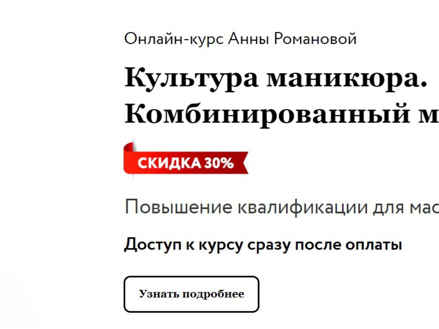 Отзывы о курсе «Культура маникюра. Комбинированный маникюр. Базовый тариф» от Анны Романовой
