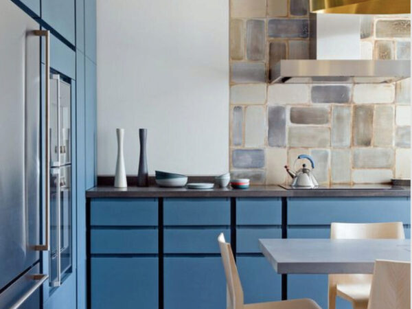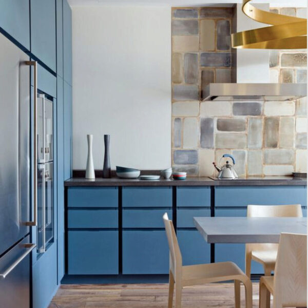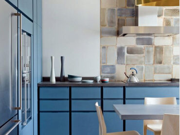 - Материалы, применяемые в кухонной мебели (фасады, столешницы, фартуки) и в отделке помещения (полы, стены).