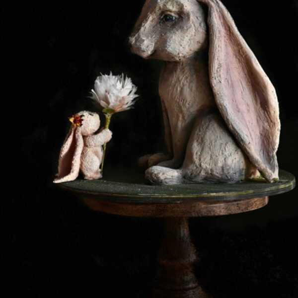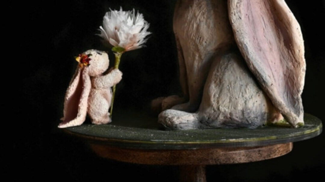Торт «Зайка пушистик»: Сборка начинки торта «Фисташка-Банан» Приготовление ганаша на темном шоколаде и идеальное выравнивание Работа с фигурным шпателем Покрытие торта велюром Лепка фигурки зайки из мастики Тематический декор из мастики: ромашки, пчелки и листики Вафельные фантазийные цветы