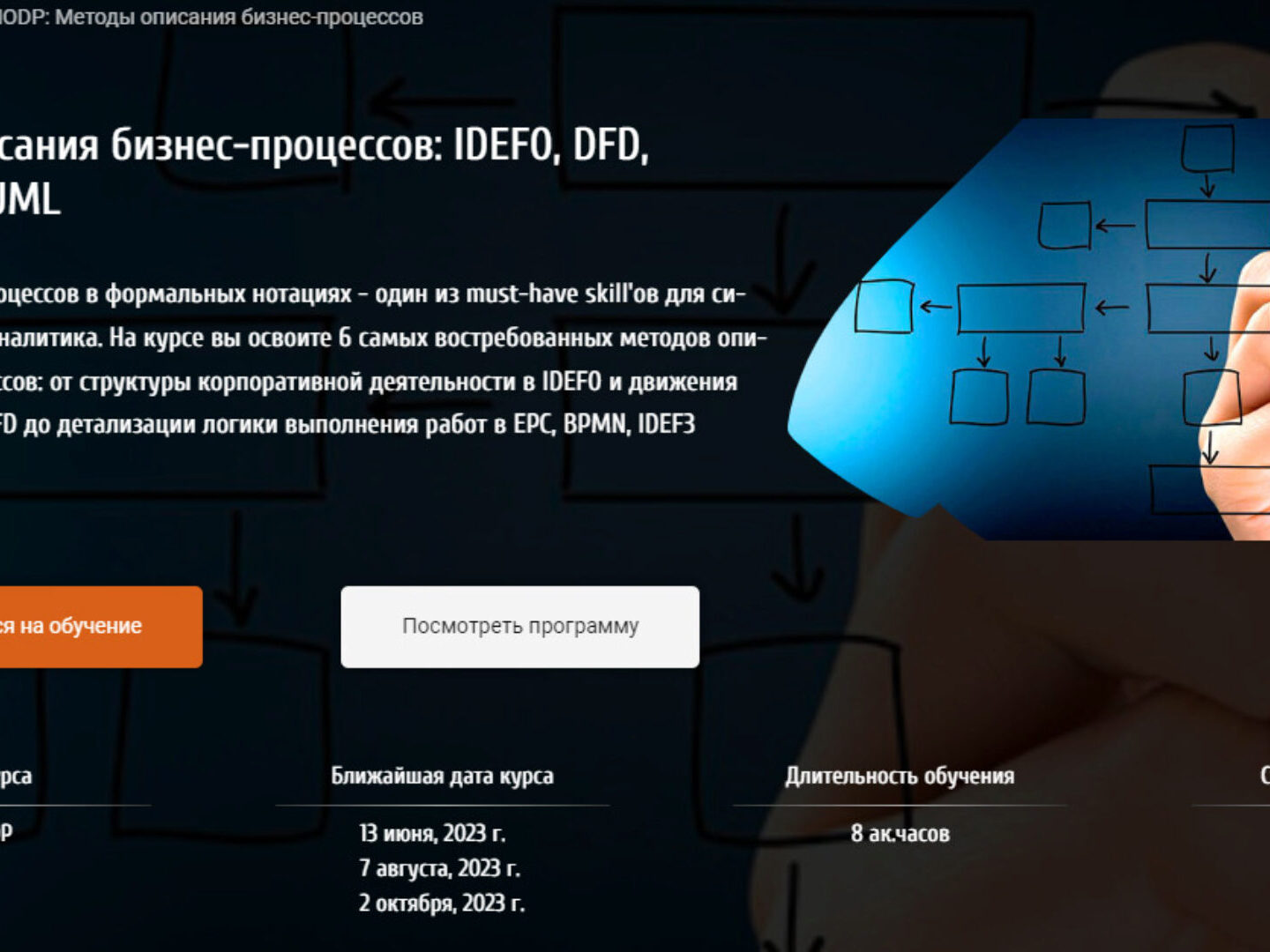 Описание бизнес-процессов в формальных нотациях - один из must-have skill'ов для системного и бизнес-аналитика. На курсе вы освоите 6 самых востребованных методов описания бизнес-процессов: от структуры корпоративной деятельности в IDEF0 и движения потоков данных в DFD до детализации логики выполнения работ в EPC, BPMN, IDEF3 (workflow) и UML.